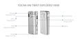 The Yocan UNI Twist offers features like adjustable height and width tools allowing you to fit almost every cartridge on the market. This means you can use a wide variety of both pre-filled and refillable carts like the original UNI Box Mod, the UNI Pro that followed thereafter, and the UNI S. The Yocan UNI Twist sits in between the OG UNI and the UNI S in terms of size and dimensions. This makes the Yocan UNI Twist a great battery to use when you’re out and about. Standing at only a few centimeters taller than the smallest UNI in production, the Yocan UNI Twist allows you to take your sessions with you almost anywhere you go. Plus, with the inclusion of an integrated hanging hole, you can wear the Yocan UNI Twist around your neck, just in case there’s no more room in your bag, your purse, your pocket, or even if you have both your hands full. Other familiar features include the same single power button control allowing you to power the device on, off, and fire up the heating element in your favorite cartridges. And despite the steady stream of UNI-standard features, the Yocan UNI Twist offers a few things that separate it from the rest of the devices in the stable. Features like twist-type temperature control setting allows you to change the temperature profile of the Yocan UNI Twist without having to push a button. Other features like the USB-C charging technology used in this cartridge battery not only gives you faster charging times and a more stable power delivery but also makes the Yocan UNI Twist one of the brand’s next-gen oil vaporizers.