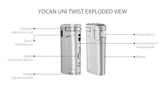 Yocan UNI Twist Universal Portable Box Mod - SILVER is backordered and will ship as soon as it is back in stock.